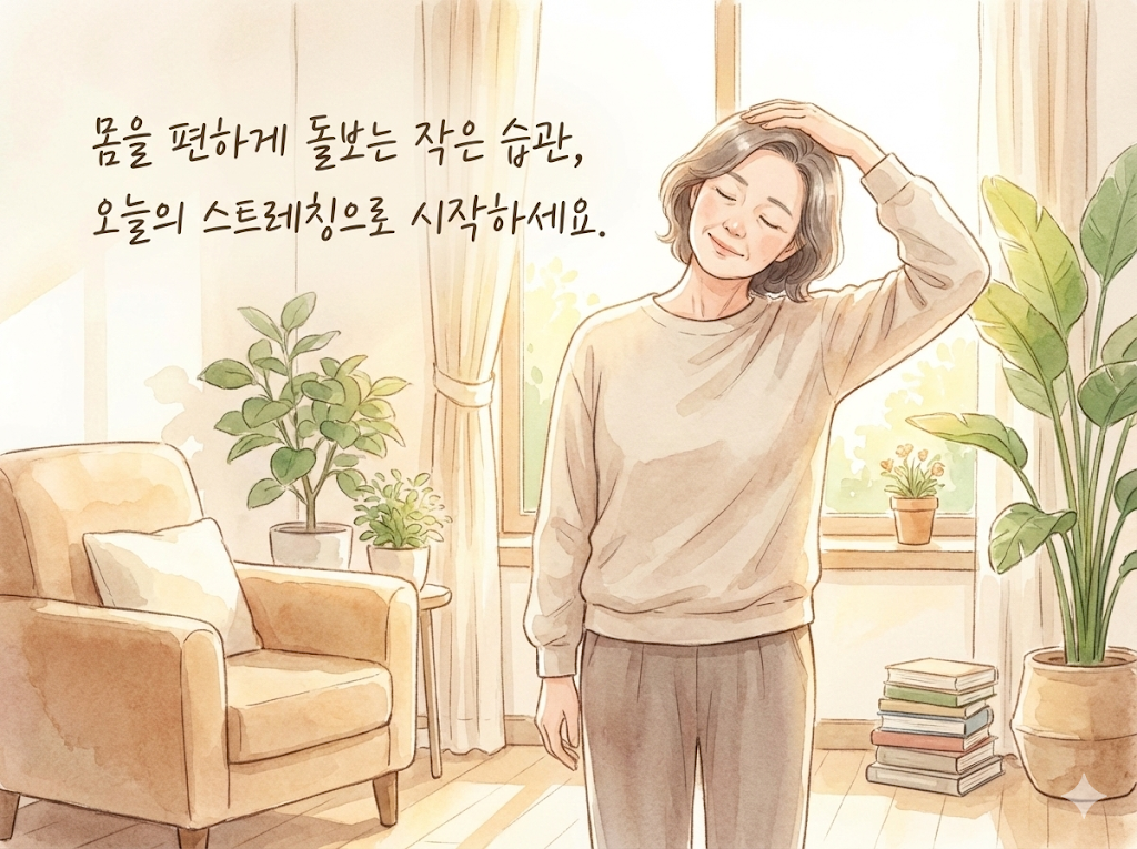 주부에게 맞는 스트레칭의 기본은 많이 하는 것이 아니라, 무리하지 않는 것입니다. 이미 하루 종일 몸을 쓰고 있는 주부에게는 강한 자극보다 회복을 돕는 부드러운 스트레칭이 필요합니다. 통증 없는 범위에서, 호흡을 유지하며, 자주 쓰는 부위를 중심으로 짧게 실천하는 것이 가장 현실적인 방법입니다. 스트레칭을 또 하나의 숙제로 만들기보다, 몸을 편하게 돌보는 습관으로 받아들여 보세요. 작은 스트레칭 하나가 쌓여, 주부의 하루는 분명 더 가벼워질 수 있습니다.