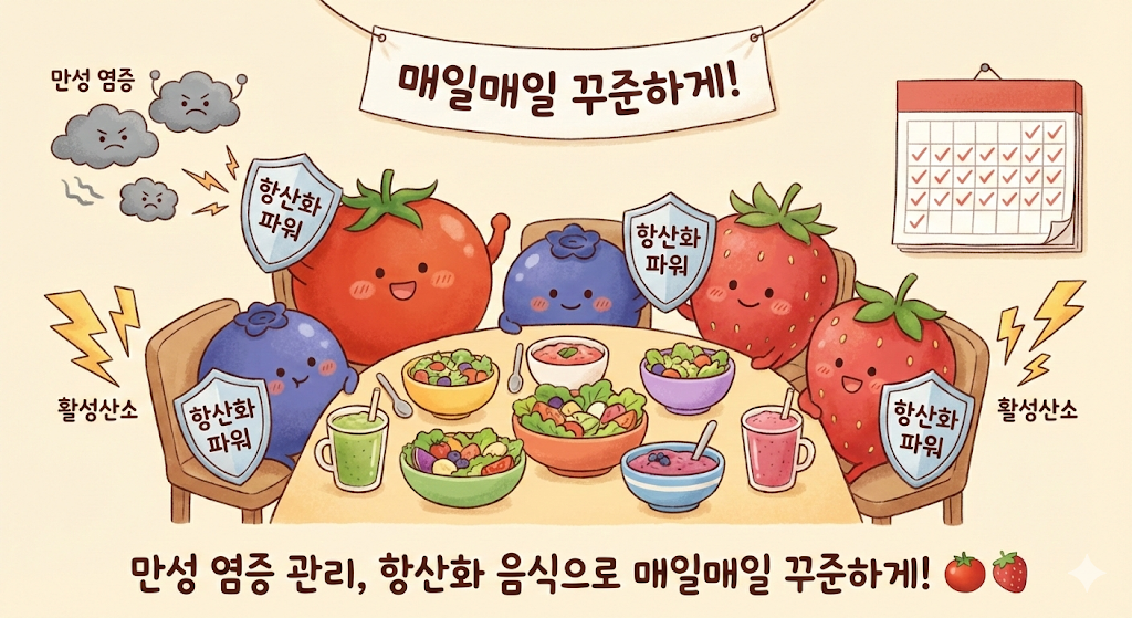 만성 염증은 단기간에 해결되는 문제가 아니라, 오랜 생활 습관의 결과로 축적되는 건강 상태다. 항산화음식은 활성산소를 조절해 염증 반응의 악순환을 완화하는 데 중요한 역할을 한다. 토마토는 라이코펜을 중심으로 혈관과 세포 수준의 염증 관리에 도움을 주며, 베리류는 안토시아닌과 풍부한 식이섬유를 통해 염증 지표와 장 건강을 함께 관리하는 데 기여한다. 핵심은 특정 음식에 의존하는 것이 아니라, 과학적으로 검증된 항산화 식품을 일상 식단에 꾸준히 포함시키는 것이다. 이러한 식습관의 누적이야말로 만성 염증을 관리하는 가장 현실적이고 신뢰할 수 있는 방법이다.
